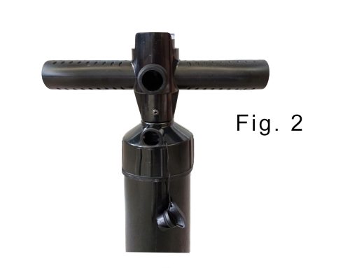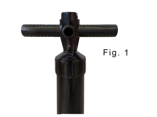 - Ensemble complet : Planche, Pagaie aluminium réglable, Sac à dos de voyage Voyager ISUP, Bandoulière, Leash enroulé, Sac étanche, Aileron amovible, Pompe Double Action : pendant la 1ère phase du gonflage utiliser la double action : clip fermé, Fig.1, lorsque le la pression arrive à une valeur relativement plus élevée, utilisez une simple action : clip ouvert, Fig.2.